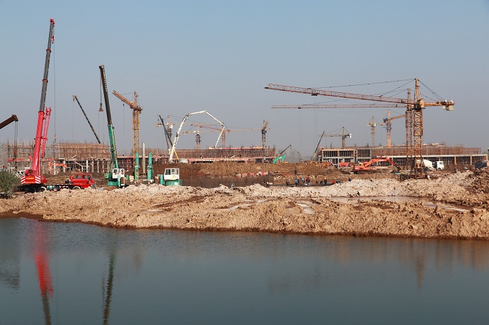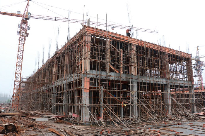 目前,大部分厂房二层都基本浇筑结束,正在进行三层的浇筑准备,在现场制作的设备也紧锣密鼓的进行,同时配套的污水处理站也在紧张施工中。最近阴雨天气较多,施工队伍们克服种种困难,确保工期按时完成。