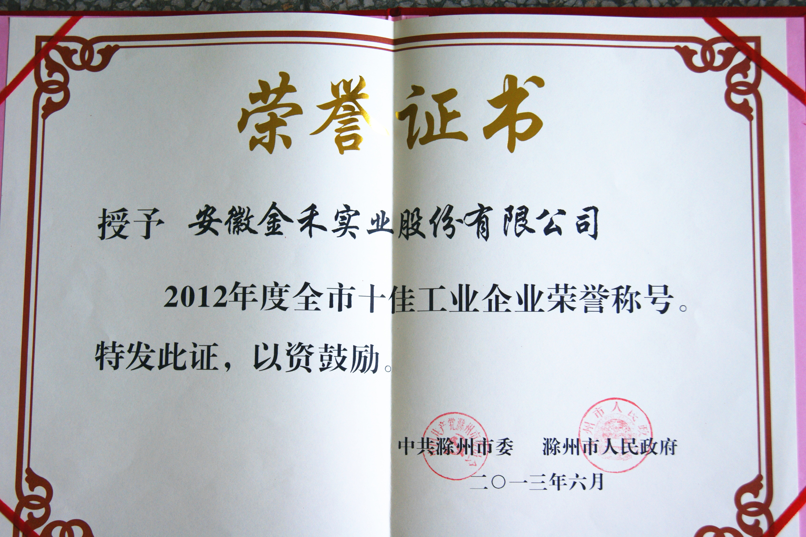 2013年6月17日下午,中共滁州市委、滁州市人民政府在滁州隆重召开全国、全省和全市2012年度先进集体、优秀个人表彰大会。
