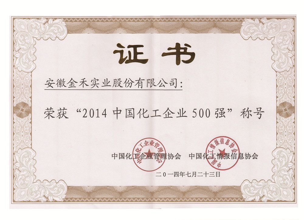 公司入围2014年中国化工500强