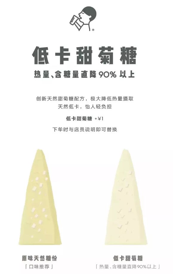 这股风潮也席卷了线下餐饮市场的饮料品类,2018年作为中国第一家推出减糖替代糖浆的喜茶,也尝到了甜头。据业内人士透露,刚推出的头几个月由于消费者对代糖糖浆的认知有限,选择用低热量低糖糖浆的消费者并不多,只占到了1/10。但是短短几个月,这个数据突然就爆发了,随着消费者的认知度提升,喜茶2018年的代糖糖浆使用量竟然达到了惊人的1000多吨。