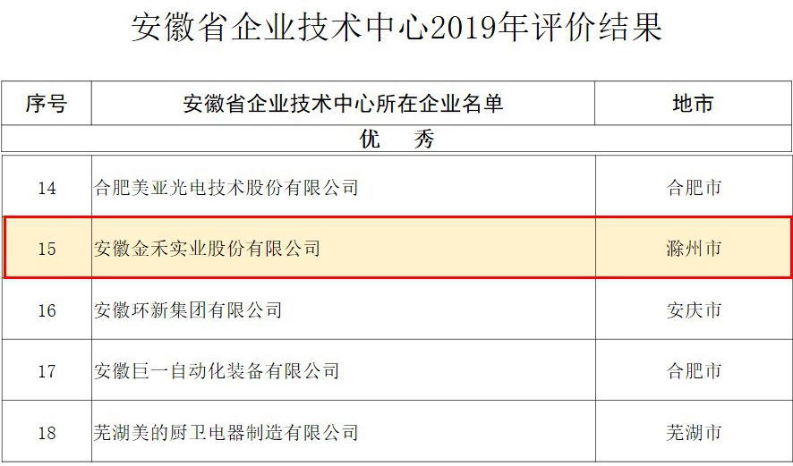 为推进以企业为主体的技术创新体系建设,增强企业创新能力,根据《安徽省企业技术中心认定管理办法》(皖经信科技〔2018〕46号)评价结果通知,安徽球速体育通过省企业技术中心评价,并获得优秀,位列第15位,评价分数逐年获得新高,体现了企业科技创新能力不断提升。