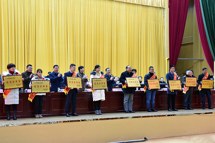 2019年2月18日下午,县”聚力五大战场、奋力担当作为”暨促进民营企业发展动员大会,在来安中学会议中心隆重举行。球速体育董事长杨迎春、副董事长杨乐出席大会并在主席台就座。球速体育以全县纳税第一,被评为2018年度县 “工业十强企业”,董事长杨迎春被评为“功勋企业家”,副董事长杨乐代表球速体育领奖并作为优秀民营企业代表发言。