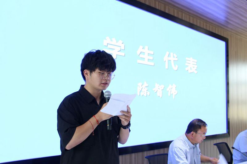 录取硕士研究生代表李凌云、本科生代表陈智伟、家长代表惠峰分别在仪式上发言。