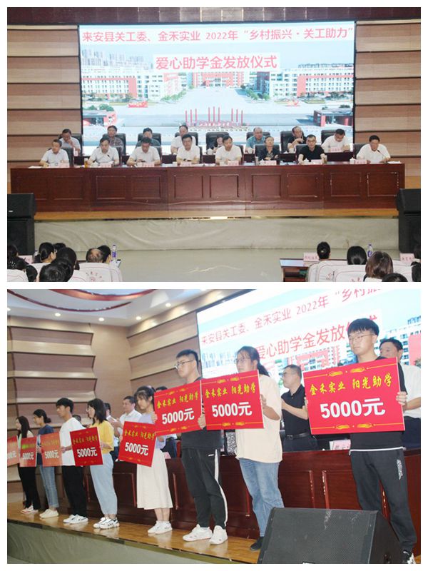 8月26日,由县关工委和球速体育共同举行的2022年度“乡村振兴.关工助学”爱心助学金发放仪式在来安中学举行,与会领导为120名受资助学生发放爱心助学金33万元。