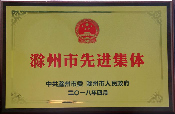 公司荣获2018年“滁州市先进集体”荣誉称号