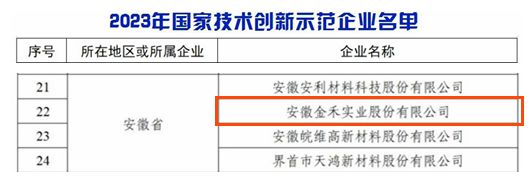 工业和信息化部近日印发通知,公布2023年国家技术创新示范企业名单,安徽球速体育被认定为“2023年国家技术创新示范企业”。