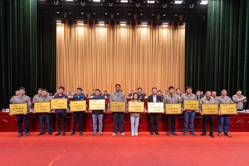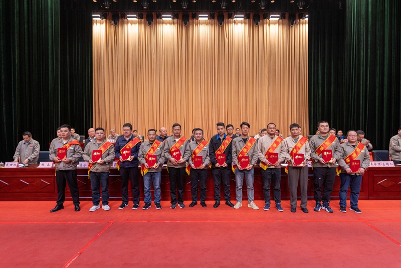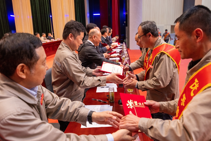 与会领导向获得表彰的先进集体、劳动模范、优秀管理者、优秀科技工作者、销售标兵颁奖。